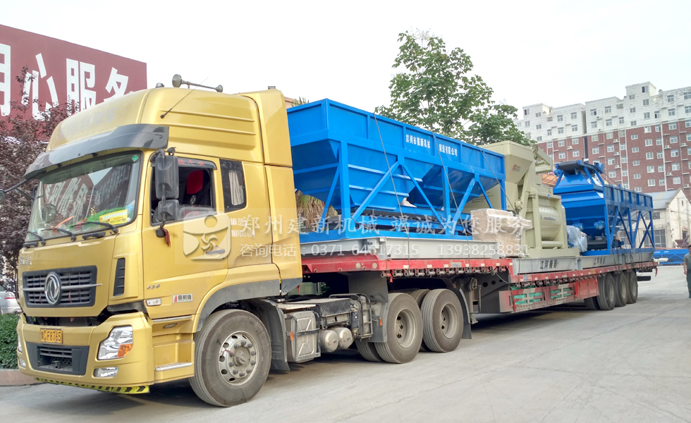 5月31日下午,建新機械為云南用戶訂制的一套HZS120混凝土攪拌站設備正在安排裝車,已將發往昆明。輛車已經裝載完畢,裝載了一臺JS1500混凝土攪拌機以及PLD1600四倉骨料配料機。 而皮帶輸送機、水泥倉、螺旋輸送機、控制室以及其他設備與配件也即將全部裝車,當天晚上該套混凝土攪拌站設備所有部件即全部出發,發往云南昆明,帶設備到達之后,建新機械有工程師前往昆明協助設備的安裝與調試工作。