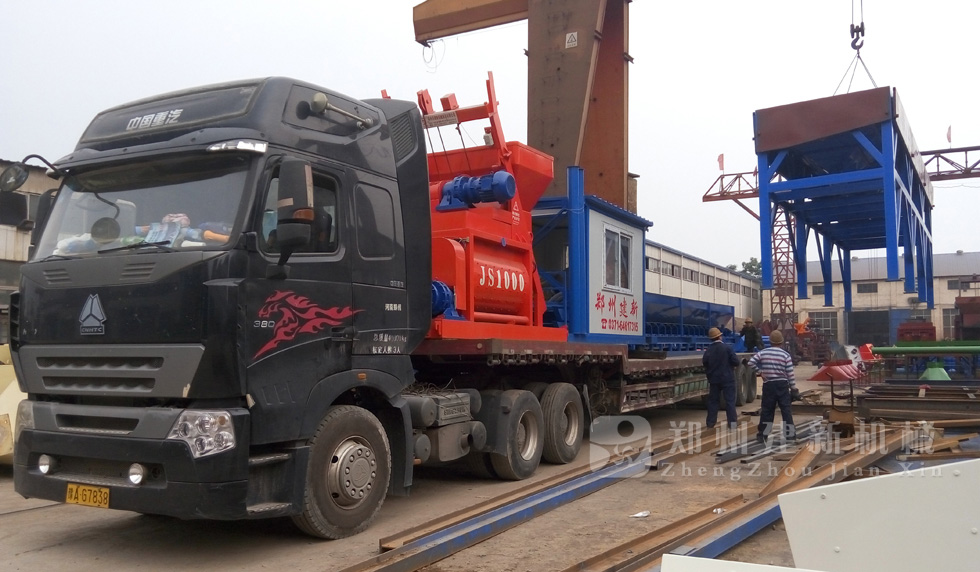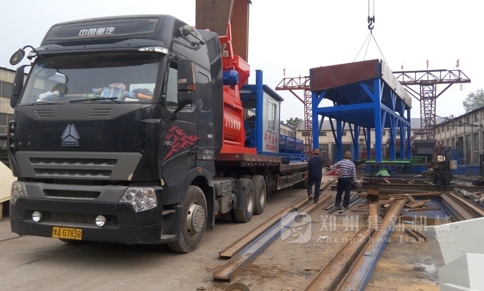 安徽用戶6月下旬的HZS50攪拌站訂單,7月14日發貨,圖為建新廠家裝車過程。